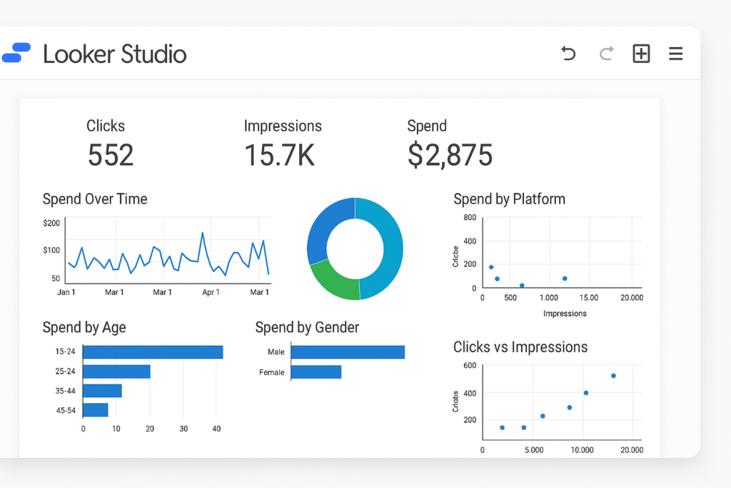 اول مشخص کن هدف این داشبورد چیه. مثلا میخوای بفهمی بودجه تبلیغات دقیقا کجا خرج شده و چه خروجیای داشته. بعد تصمیم بگیر کدوم دادهها باید پررنگتر دیده بشن. برای مثال هزینه تبلیغات در طول زمان، هزینه به تفکیک پلتفرم، هزینه بر اساس سن و جنسیت، تعداد کلیکها، ایمپرشنها و نسبت هزینه به کلیک یا ایمپرشن. در نهایت هم مشخص کن این داشبورد قراره دست چه کسی بیفته. مثلا تیم مارکتینگ یا مدیر تصمیمگیرنده.