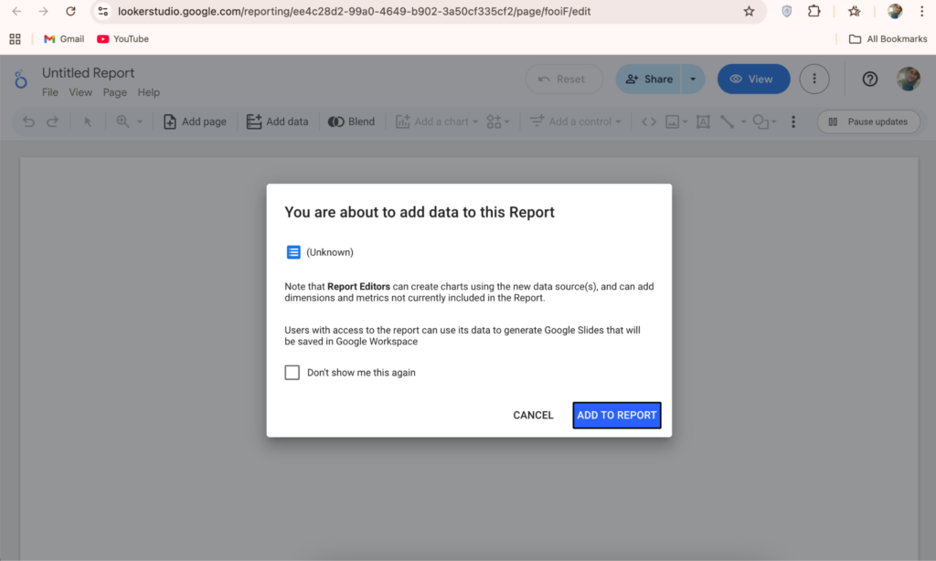 بعد از انتخاب کانکتور، باید اجازه دسترسی به دادهها رو بدی. معمولا یک صفحه ورود گوگل باز میشه و باید با ایمیلی وارد بشی که به اون منبع داده دسترسی داره.